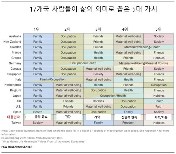 대한민국은 여야를 막론하고 자유시장경제를 지지하는 무한경쟁사회다. 그러다 보니 아빠들은 야근이 미덕이 되고 과로가 자랑이 됐다. 엄마들은 자식 학교 성적으로 서열이 나눠진다. 전 세계에서 유일하게 삶의 가치 1순위로 '돈'을 꼽는 나라다. 그러면서도 자신의 직업에서 가치를 찾지 못하는 국가다. 정말 존나 고독한 나라가 아닐 수 없다.