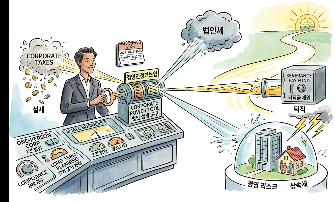 숫자로 보면 더 명확하다. 법인 순이익이 연 1억 원이고, 법인세율이 약 20%라고 가정하자. 여기에 경영인정기보험 보험료로 연 1200만 원을 납입하면 과세 대상 이익이 그만큼 줄어든다. 절세 효과만 약 240만 원이다. 보험료를 내면서 동시에 세금도 줄이는 구조다. 개인 사업자에게는 없는 혜택이다.