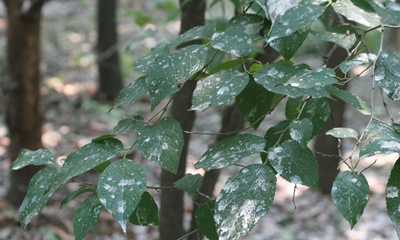 ▲철새 배설물로 하얗게 변한 나뭇잎