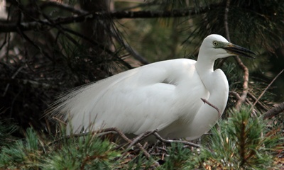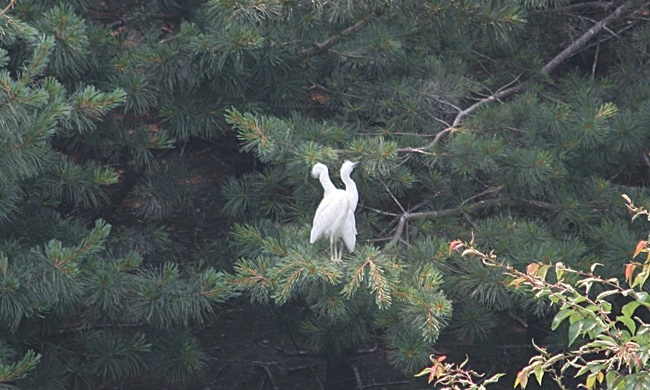 가장 먼저 눈에 띈 것은 전나무 여기 저기 앉아 있던 어른 쇠백로와 중대백로들이었다. 얼핏 봐도 그 수가 족히 2~30마리는 돼 보였다.