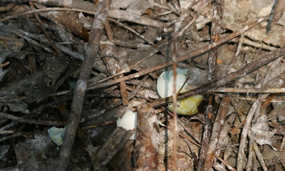 둥지가 있는 나무 주변에는 새끼들 것으로 짐작되는 알 껍질이 여기저기 늘어져 있었다. 매추리알 만한 크기의 알 껍질은 온통 하얀색이었는데 손을 대자 바스락 하며 부서졌다.