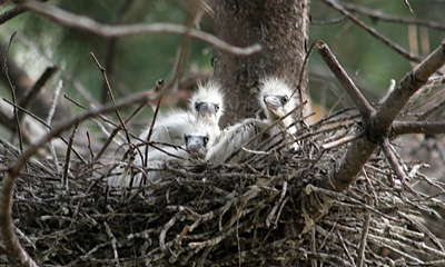 아니나 다를까 전나무 가지에는 수많은 둥지들이 있었고 그 둥지 안에는 갓 태어난 듯한 새끼들이 기자를 노려보고 있었다.