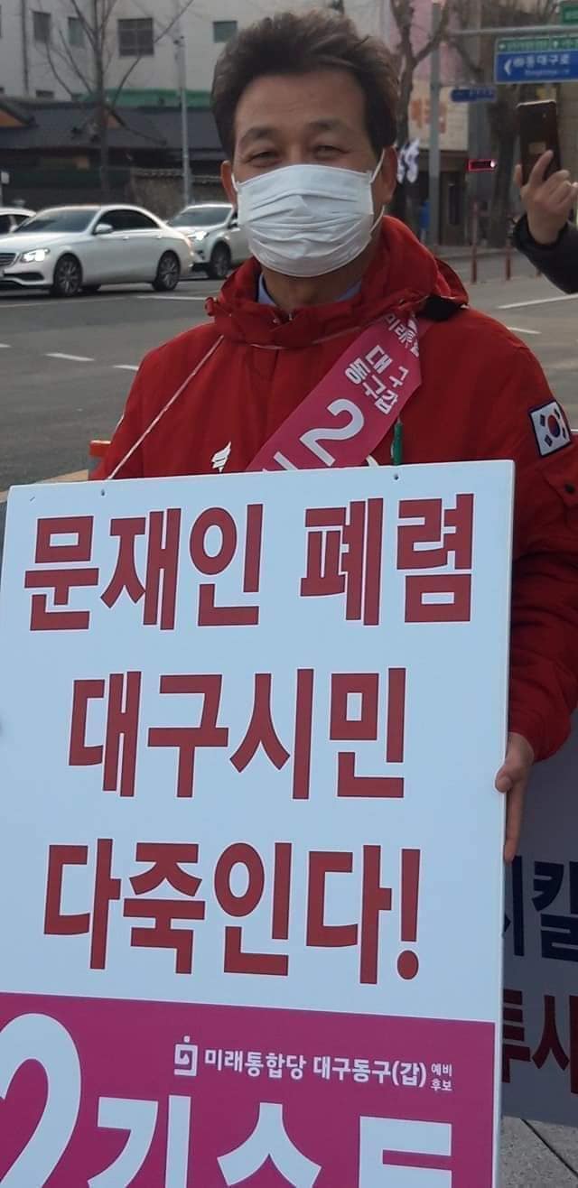 참 인터넷에 이런 사진이 돌아다니던데. 대구 쪽 미래통합당 예비 후보님이신 듯.