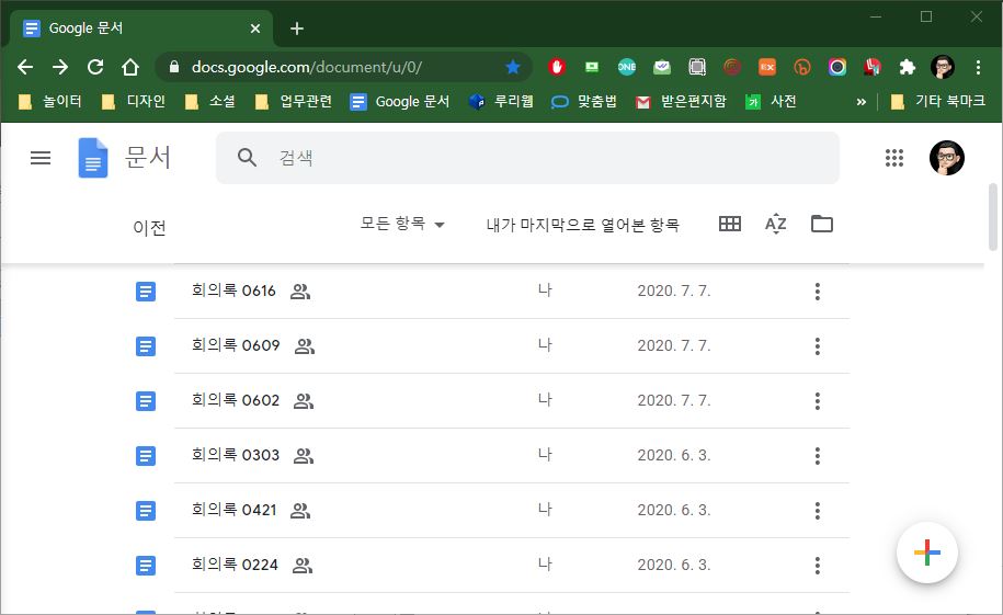 아무튼 여기까지 마쳤으면 크롬을 띄우고 구글 문서(https://docs.google.com)로 간다. 오른쪽 아래 '+' 버튼을 눌러 새문서를 만들어 준다.